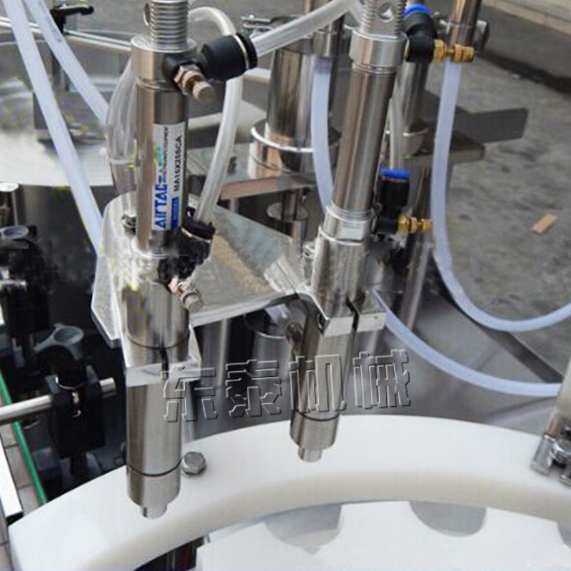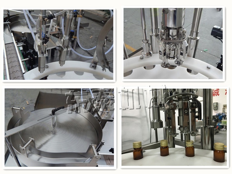 3、小瓶藥液灌裝旋蓋機灌裝系統具有吸氣功能,可防止液滴飛